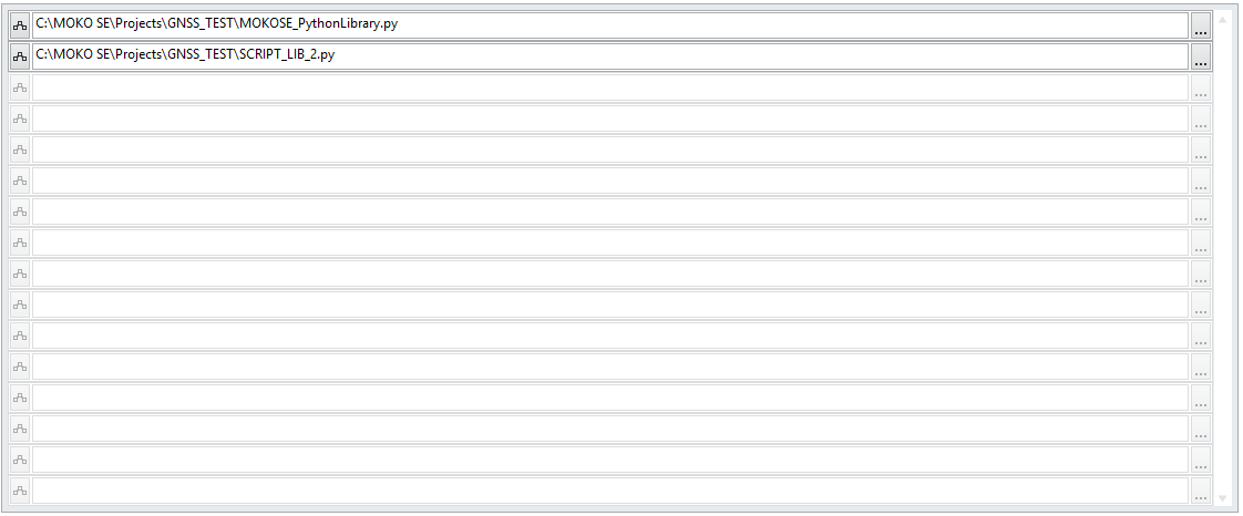 С помощью вкладок пользователь может переключаться между списками исполняющихся скриптов (Executable scripts), библиотечных скриптов (Library scripts) и файлов шаблонов для экспорта отчётов (Project templates).